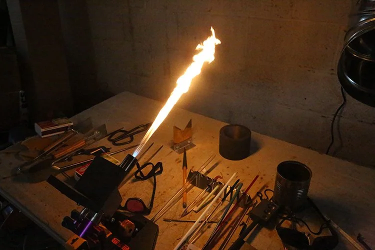 Sim, our head instructor, has been practicing lampworking for over five years and has learned from master glass artists that have shaped his technique and teaching style. Sim has designed his classes to be both informative and engaging, with a focus on helping students develop their own unique style and technique.